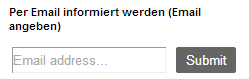 Wenn ihr hier eure Emailadresse angebt bekommt ihr immer eine Mail wenn es neue Blogeinträge gibt. Das kann besonders für jemanden interessant sein der nicht täglich die Homepage nach Neuigkeiten absuchen will. Viel Spaß damit!