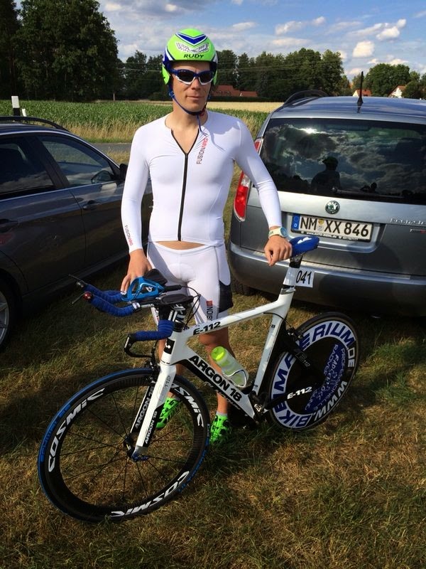 Einige Athleten rieben sich die Augen als sie die Radrakete Manfred Büttner mit seinen Lightweights sahen. Manfred Büttner, der ist doch eigentlich nachtaktiv und auf Strecken von unter 200 Km zieht der sich doch nicht extra an? Aber manchmal traut er sich auch bei Sonnenlicht unters Volk und wie!!