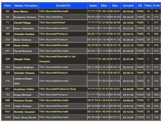 Auch hier konnte Bergi seine Trainingsleistungen im Wettkampf umsetzen und starke 1:14 (inkl. Wechsel) auf 42 km auf den Asphalt zimmern. Nach Schwimmen und Radfahren wäre er Vereinsmeister gewesen. Aber die starken Läufer Benz und Christl waren in Schlagdistanz. Etwas dahinter entbrannte ein Kampf „Alt“ gegen „Jung“. So galt es für Michael „die Wampe“ Plendl etwas Abstand zwischen sich und die starken, etwas jüngeren Läufer zu legen. Dies gelang gegenüber Basti Schäfer schonmal nicht. Basti fuhr sehr stark und erzielte die identische Radzeit. Mit 1:17 war er hier sehr weit vorne in der internen Windschattenwertung. Kurz dahinter folgten mit Andi Meier und Armin Bauer zwei weitere starke Läufer.