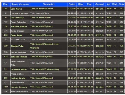 Bei den Damen gab es den zu erwartenden Favoritensieg durch Petra Stiegler. Mit 2:31 war Sie hier auch in der Damenwertung ganz vorne dabei und gewann souverän ihre Altersklasse TW45. Gratulation!!