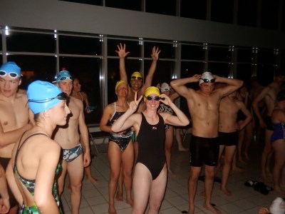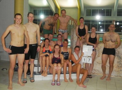 Für diesen Wettbewerb mussten in einer Zeit von vier Stunden so viele 50 m Bahnen wie möglich geschwommen werden. Start war um 20 Uhr und beendet wurde die Schwimmzeit um 0 Uhr. Ganz stolz knackten wir noch in den letzten Minuten die 17 km Marke und konnten wieder unsere hochgesteckten Ziele erreichen.