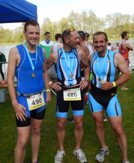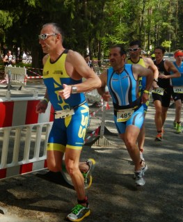 Am ende des Radfahrens betrug der Abstand ca. 40 Sekunden, aber nun gings ans Eingemachte. Der 5 km langen Laufstrecke. Hier konnten alle drei mit einer guten Leistung aufwarten und teils ihre Positionen sogar verbessern.