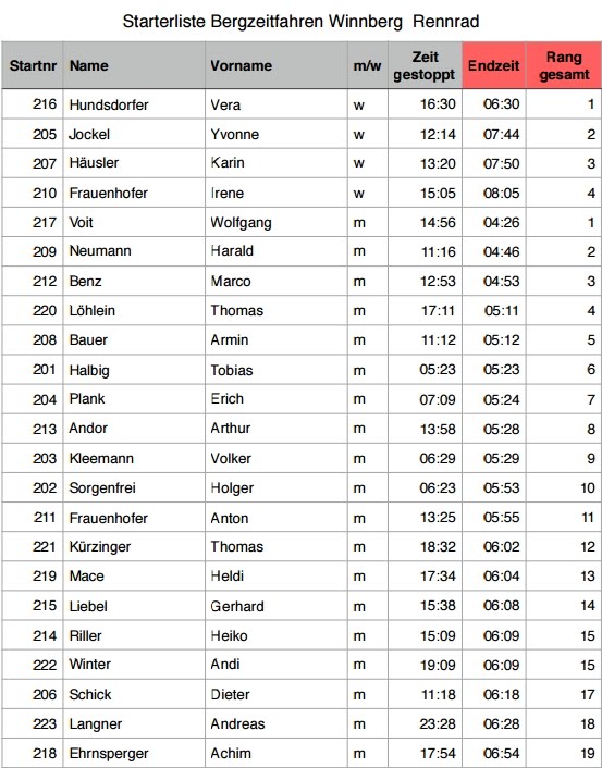 fuhren mit „Wahnsinnszeiten“ die 2 km bis zur Ortschaft Winnberg hinauf.