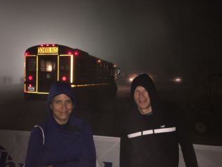 Es ware noch dunkel und sehr nebelig was einen recht gruseligen Hintergrund abgab. Ich konnte aber das erste Mal mit einem amerikanischen Schulbus mitfahren. Ein Erlebnis.