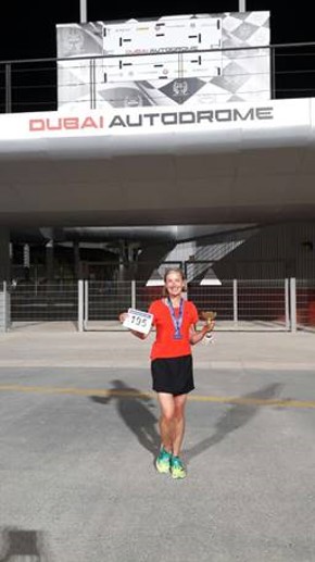Ebenfalls große Hitze und doch ein Event der ganzen Art hat Petra Locke, ebenfalls TWin Neumarkt, bei einem Kurzurlaub in Dubai erlebt. Spontan entschied sie sich beim „Ramadan Night Run at Dubai 2017“ teilzunehmen. „In einer lokalen Zeitung las ich die Ausschreibung und hab mich kurzfristig online für die 10 km-Strecke angemeldet,“ erzählt Petra. Der Startschuss fiel um 23 Uhr, Austragungsort war das Dubai Autodrome, eine der modernsten Autorennstrecken weltweit. Die Temperatur betrug immer noch 30 Grad. „Ich hatte nicht mal gscheite Laufsachen dabei.“ Doch all dies war kein Hindernis für die TWin-Sportlerin – sie kam, sah und siegte! Mit 50:46 min erzielte Petra Locke den 1. Platz in Ihrer Altersklasse, erhielt Medaille und Pokal. „Sicherlich eine Lauferfahrung der ganz anderen Art und abseits vom normalen Tourismus bei dem ich viele Menschen aus den unterschiedlichsten Nationen kennenlernen durfte.“