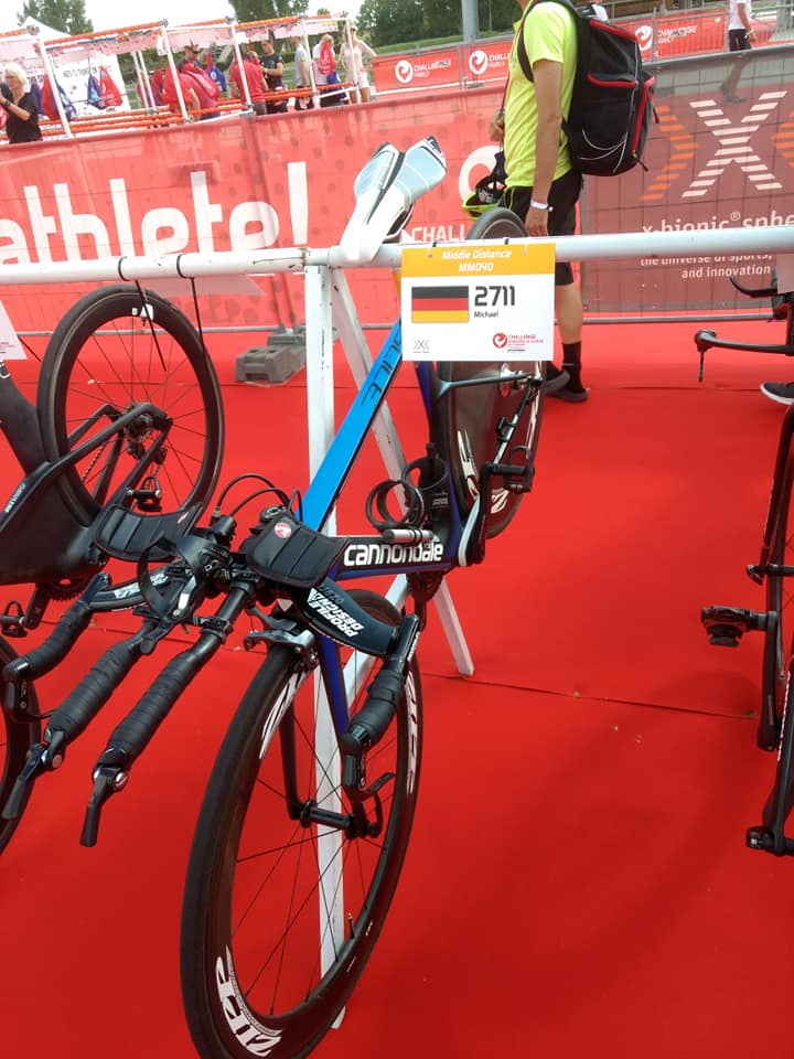 Am Wettkampftag wurde auf dem Hotelzimmer noch ein kleines, spartanisches Frühstück eingenommen und los ging es mit dem Auto in Richtung Samorin. Dort wurden dann in der Wechselzone die restlichen Wettkampfutensilien platziert, bevor es für Sandy um 9:30 Uhr losging. Das Profifeld startete bereits um 9:00 Uhr.