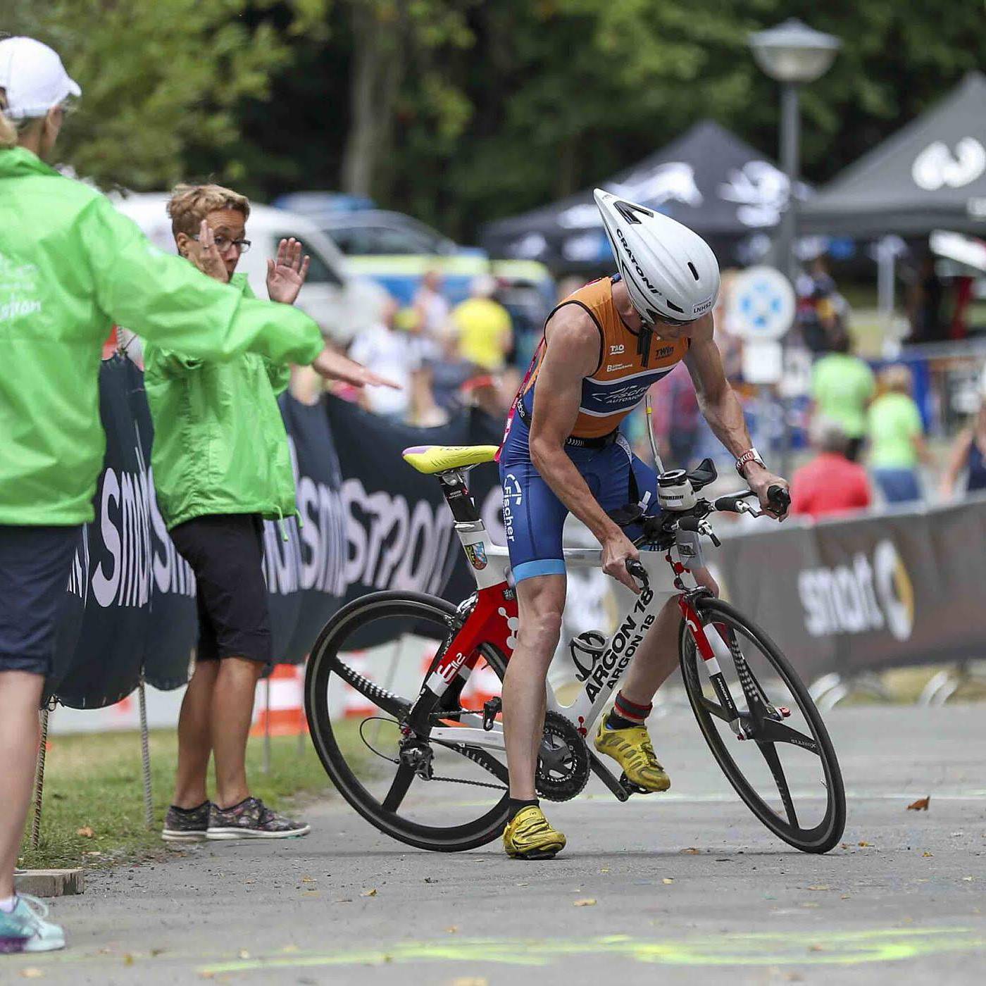 Das Schwimmen verlief dann zu Beginn gewohnt hektisch und Marco, Thomas und Lukas kamen erst nach der ersten Boje so richtig aus der „Waschmaschine“. Daniel sortierte sich von Beginn an ein kleines Stück weiter vorne im Feld ein und erlebte das Schwimmen dadurch ein bisschen entspannter. Nach den zwei Schwimmrunden, mit jeweils einem Landgang gingen Marco und Thomas ziemlich gleichzeitig auf guten Mittelfeldplätzen aus dem Wasser. Daniel verließ das Wasser an Position 13.