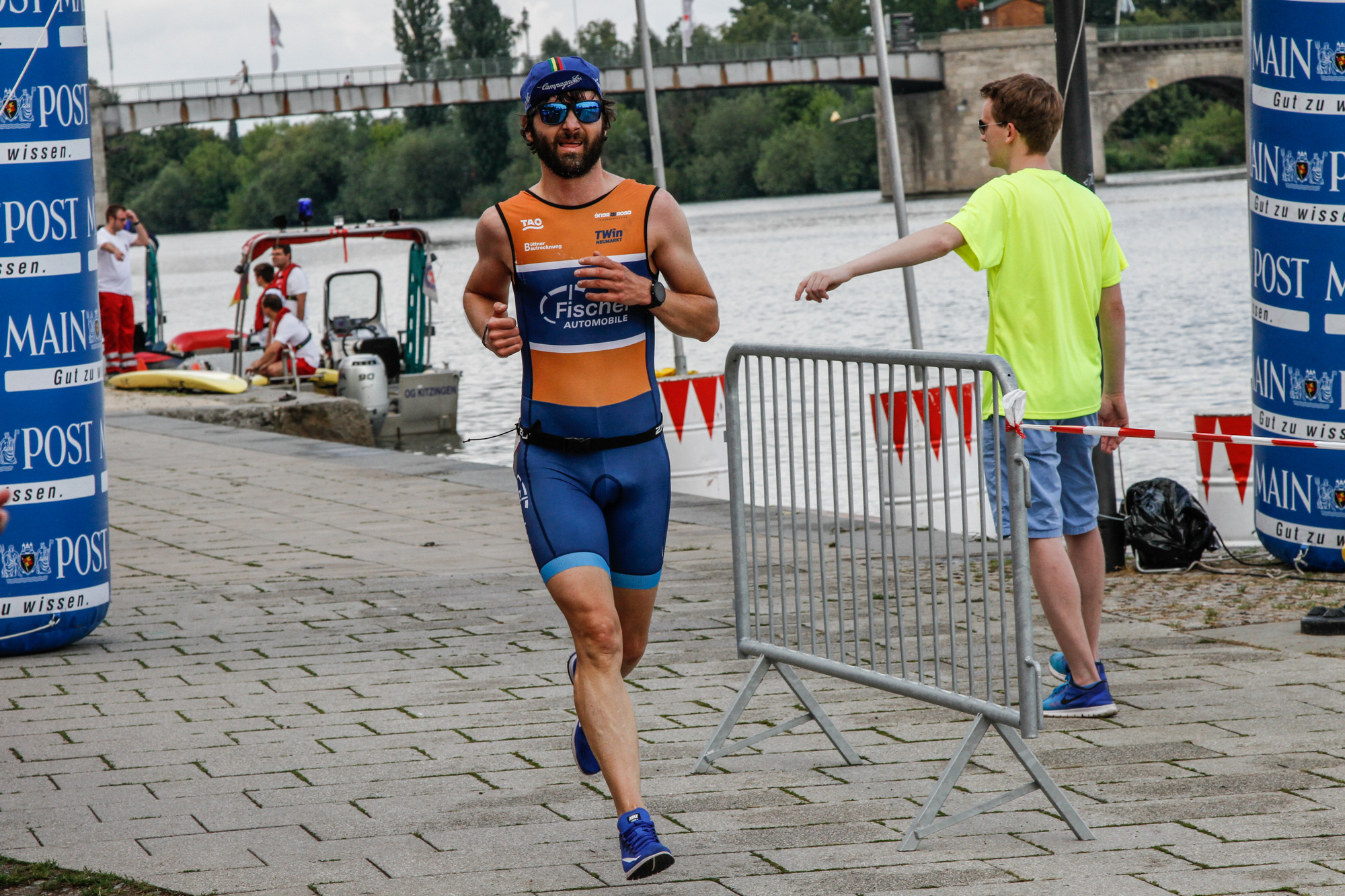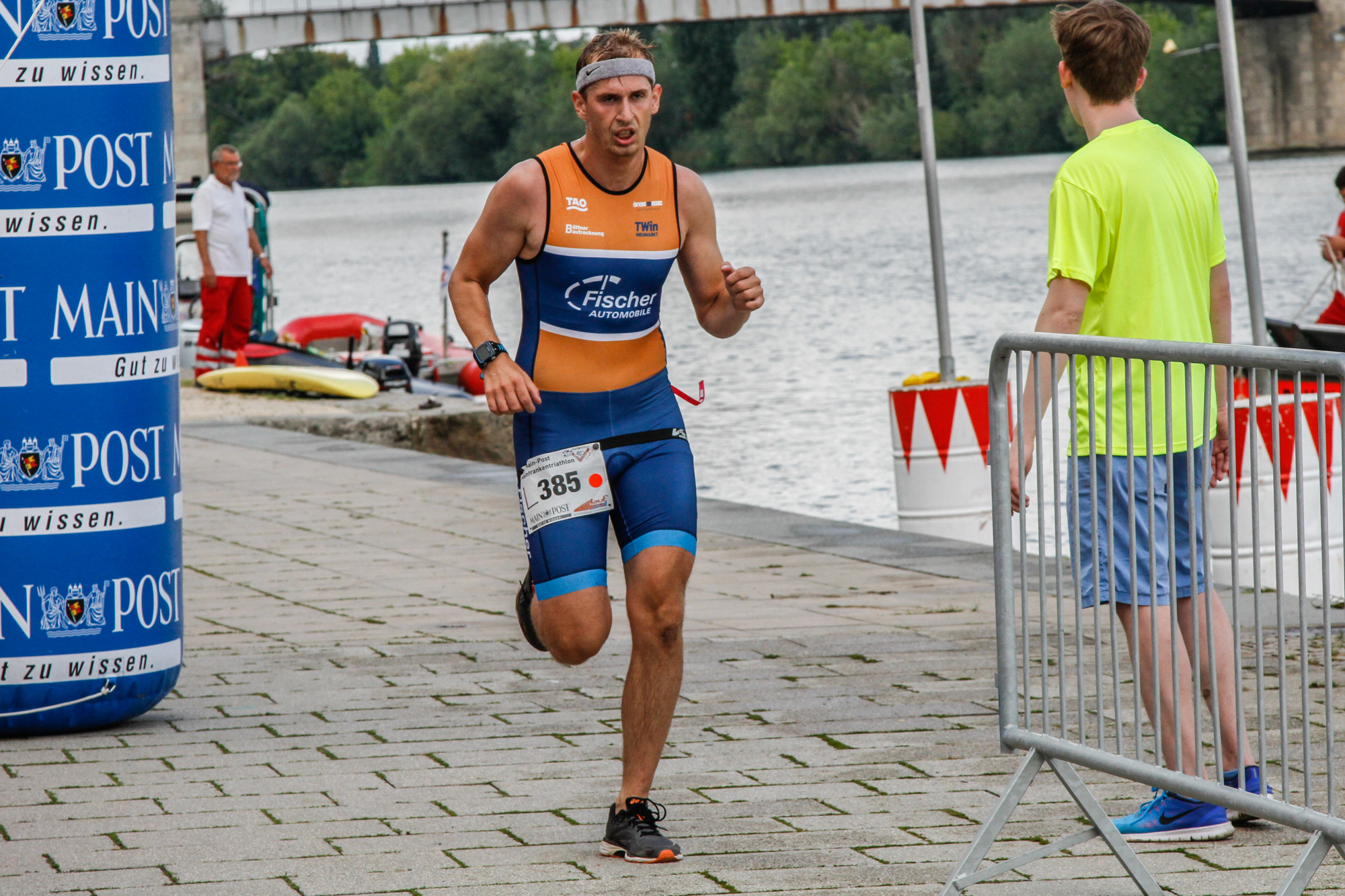 Am 03.08.19 wurde in Kitzingen die 11. Auflage des Main-Post Frankentriathlons ausgetragen. Im Rahmen der Veranstaltung wurde ein Start über die olympische Distanz (1,67 km Schwimmen, 40 km Rad, 10 km Laufen) und die Sprint-/Volksdistanz (600m Schwimmen, 20 km Rad, 5 km Laufen) angeboten. Wie auch in den vergangenen Jahren wurde in Kitzingen ein Rennen der Triathlon-Landesliga ausgetragen. Dort starteten auch die TWinler Marco Benz, Thomas Wittmann, Lukas Gruber und Armin Bauer. Abweichend von den vergangenen Jahren gingen die Liga-Starter getrennt von den anderen Sprint-/Volksdistanzathleten ins Wasser.