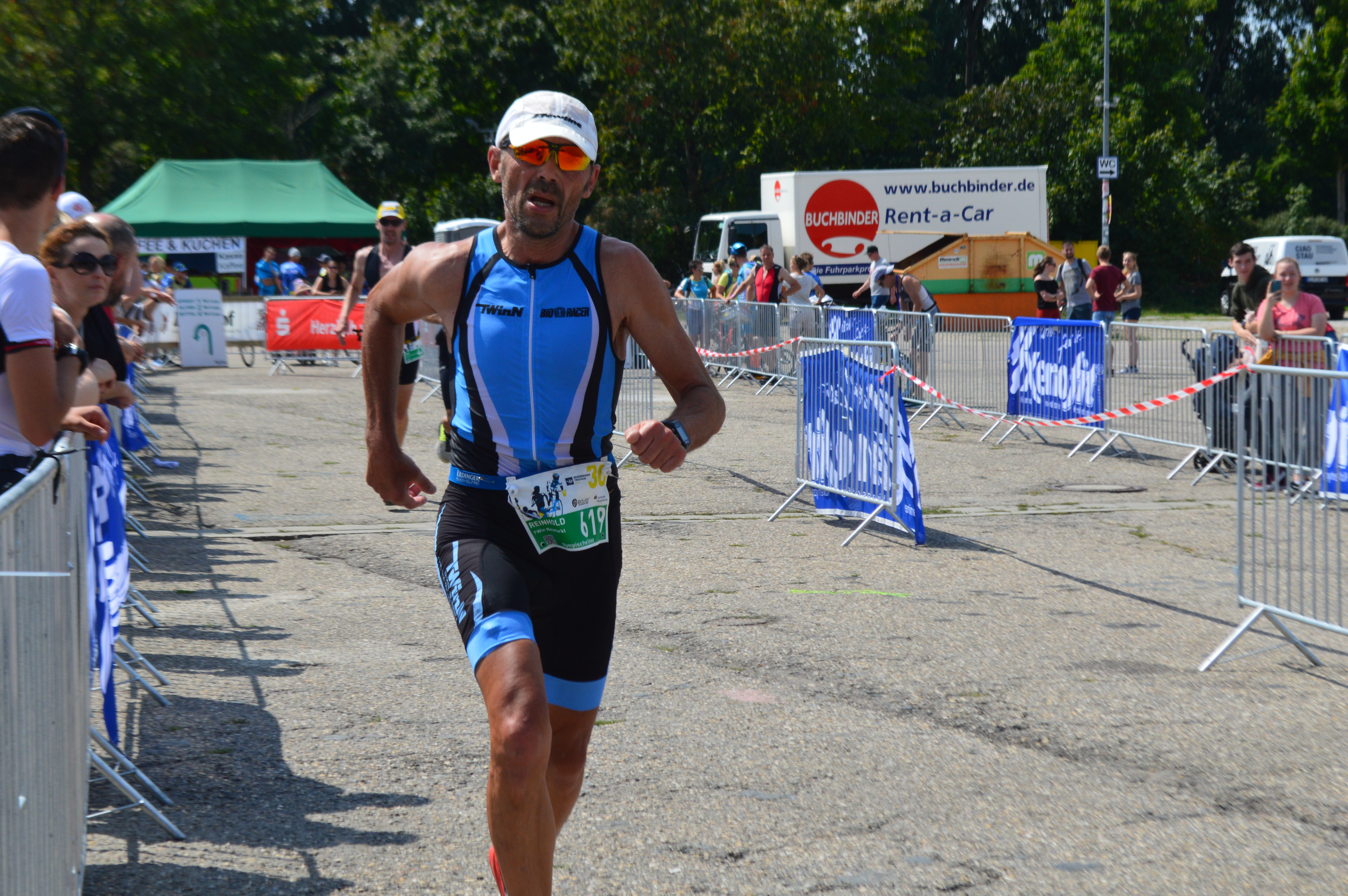 In diesem Jahr stand mit Reinhold Schmidpeter nur ein Teilnehmer vom Triathlonverein Windschatten Neumarkt an der Startlinie. Reinhold startete auf der olympischen Distanz. Da der Main-Donau-Kanal zum Schwimmstart eine Wassertemperatur von 21 Grad auswies, durfte in diesem Jahr mit Neoprenanzug geschwommen werden. Die 1.5 km lange Wendestrecke absolvierte er in guten 28 Minuten.