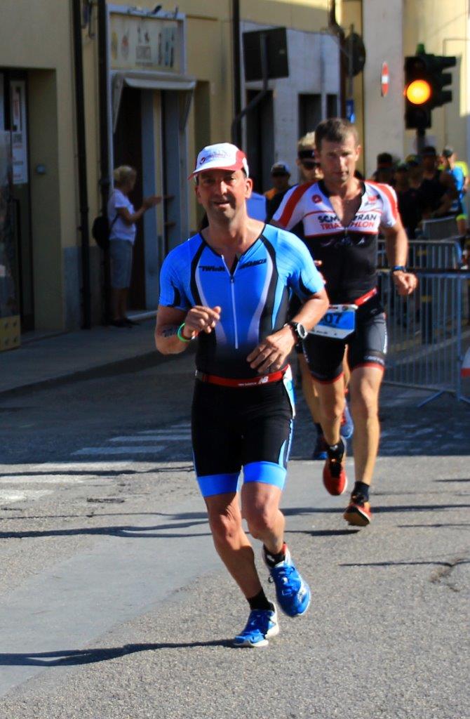 Beim abschließenden Marathon mussten auf 4 Runden noch 42 km auf meist guten Wegen absolviert werden. Auf der gesamten Strecke waren zahlreiche Zuschauer, welche die Athleten super anfeuerten. Die Strecke war auch teilweise schattig und hatte nur knapp 70 Höhenmeter. Zu Beginn lief es für Michael auch sehr gut. Die Durchgangszeit beim Halbmarathon lag bei 1:38:56. Doch dann machte sich plötzlich die veränderte Sitzposition beim Radfahren bemerkbar. Die Leistengegend begann zu krampfen und Michael musste sein Tempo drosseln. So konnte er den Marathon erst nach 3:42:36 beenden.