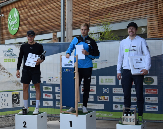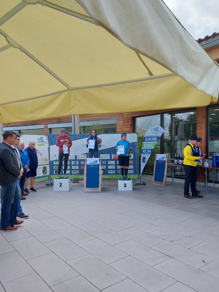 Im Rennen der Frauen gingen Sabrina Erhardt, Sarah Miehling und Monika Soder für den Twin ins Rennen. Sabrina war von Beginn an vorne dabei, sie kam im Wasser gleich gut zurecht und kam auf Platz drei aus dem Wasser. Auf dem Rad fuhr sie die schnellste Zeit und schnappte sich gleich die Führung, was sie allerdings erst in der Wechselzone realisierte, da dort das Führungsfahrzeug auf sie wartete. Monika lag nach dem Radfahren auch schon auf Platz 3 und Sarah auf Rang 17. Beim Laufen gab Sabrina nochmals alles und konnte ihren Vorsprung souverän verteidigen und holte sich ihren ersten Gesamtsieg bei einem Triathlon. Glückwunsch! Auch Monika konnte ihren Podestplatz verteidigen und konnte ihren dritten Gesamtrang und den Sieg in der AK 55 einfahren. Mit einem guten Lauf konnte sich Sarah noch um einige Plätze verbessern und landete mit Platz 11 nur knapp außerhalb der Top10.