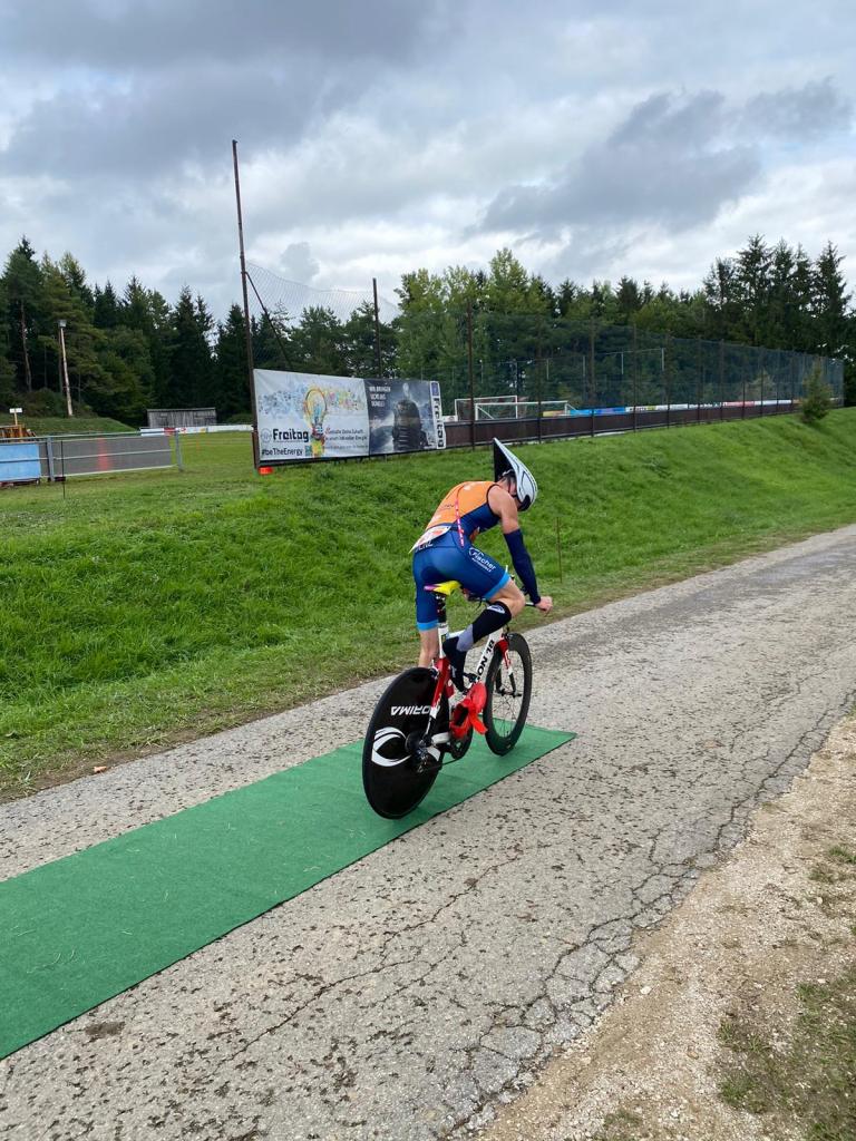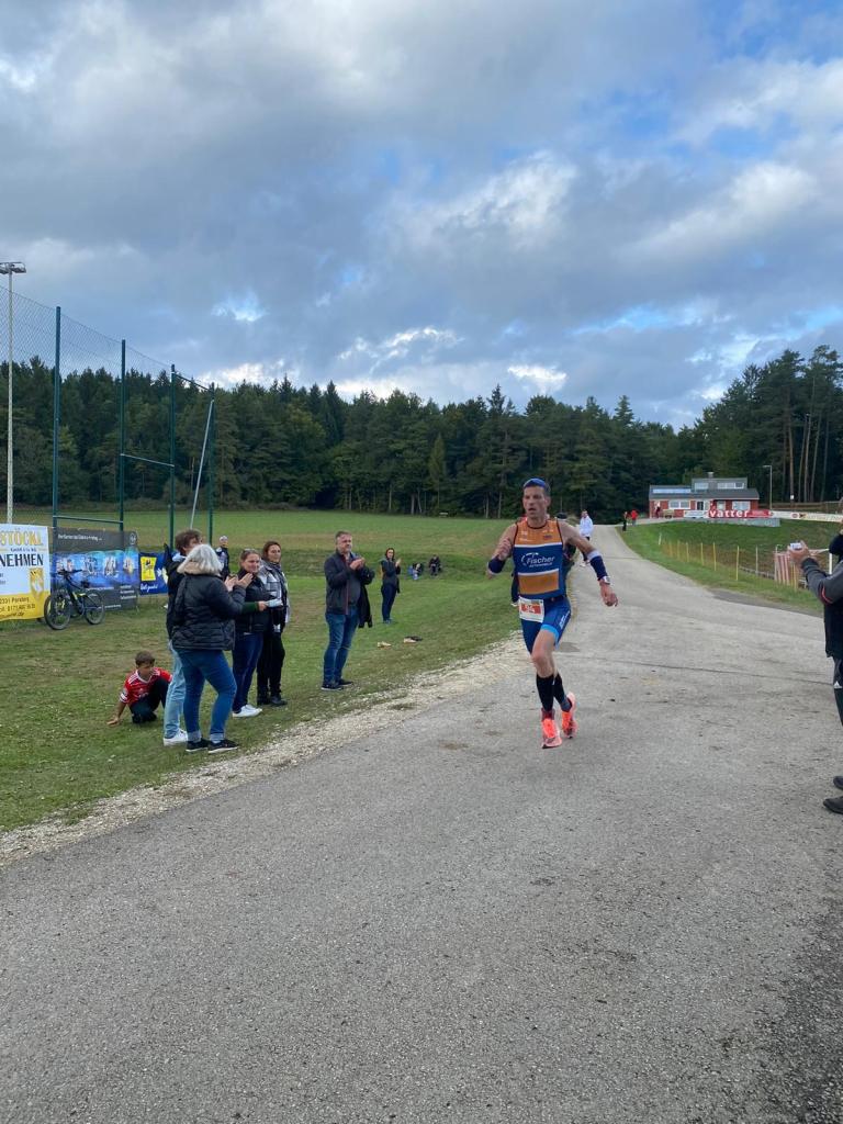 Die Kurzdistanz mit 9km Laufen, 42km Radfahren und 5,5km Laufen bestritten aus Twin Sicht Maximilian Zollbrecht und Vorjahressieger Marco Benz. Auch für Maxi Zollbrecht war es der erste Duathlon und dann gleich die längere Distanz beim Auf und Ab in Hörmannsdorf. Mit einem 18. Platz und durchwegs guten Leistungen, auch beim abschließenden Lauf, konnte er eine erfolgreiche Premiere feiern. Dem fachkundigen Publikum war ob der schweren Strecke und dem Fehlen des lästigen Schwimmparts im Gegensatz zum Triathlon klar, dass Marco Benz auch dieses Mal der haushohe Favorit sein wird. Gleich vom Start weg ließ er keinen Zweifel aufkommen, wer den Sieg davontragen wird. Bis auf kleine Probleme beim Radauf- und Abstieg (Coach Büttners Wechseltraining lässt grüßen) kam ihm nichts in die Quere.