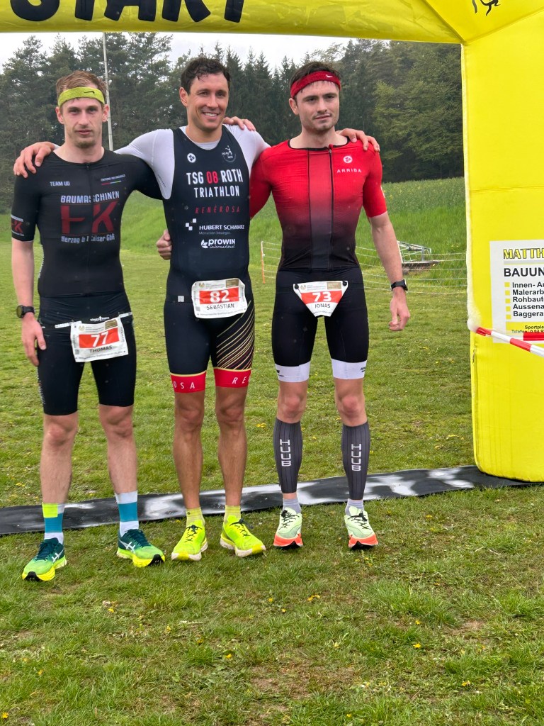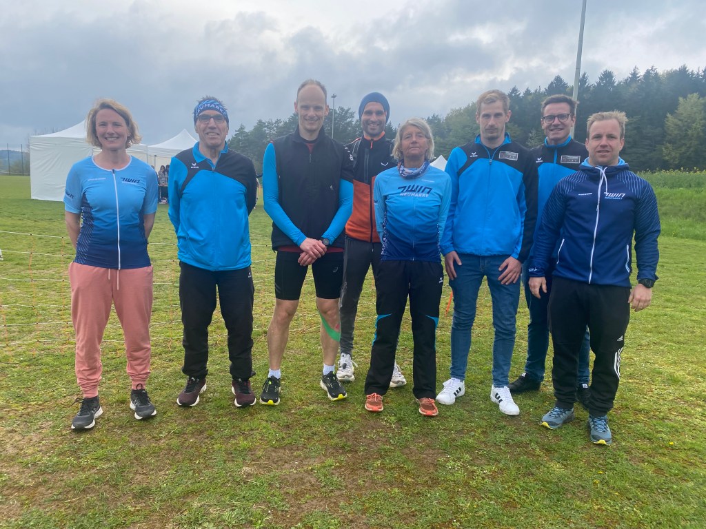 Der siebte Duathlon des SV Hörmannsdorf hatte heuer einen besonderen Höhepunkt zu bieten. Auf der Kurzdistanz (9,5 km Laufen, 42,5 km Radfahren, 5 km Laufen) wurden in dem Parsberger Ortsteil zum ersten Mal die bayerischen Meister ermittelt. Die Veranstaltung bildete den großartigen Auftakt zu einer Wettkampfserie des Bayerischen Triathlon-Verbandes. Auch für die Triathleten vom TWin Neumarkt war es für einige eine Auftaktveranstaltung. Gleich 6 Triathleten gingen auf die Kurzdistanz und konnten mit guten Zeiten glänzen. Die beste Nachricht aus Hörmannsdorf: der Verein hat einen bayerischen Meiste und er heißt Thomas Wittmann! Er musste die anspruchsvolle Streckenführung mit 1200 Höhenmetern und mehrere, kräftig in die Beine gehende Steigungen absolvieren und schaffte dies in einer sagenhaften Zeit von genau 2 Stunden. Er musste sich in der Endabrechnung nur um 1:20min dem Profi-Athleten Sebastian Neef geschlagen geben (diese wurde in der Meisterschaft nicht gewertet aufgrund seines Profistartpasses), doch nahm er im auf den beiden Laufstrecken mehrere Minuten ab. Leider hatte Thomas am Ende der Radstrecke einen kurzen Stop einlegen müssen, da ihm die Kette vom Kettenblatt gefallen ist.