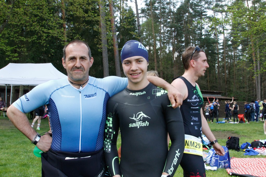 Im Jedermannwettkampf auf der Supersprintdistanz (200m Schwimmen – 10km Radfahren – 2,5km Laufen) ging der erst 15-jährige Leander Träger in einem mit Kaderathleten bestückten Starterfeld ins Rennen. Mit seiner Zielzeit von 28:03min erreichte er nicht nur den elften Platz, sondern sicherte sich unter Jugendlichen B den zweiten Platz. Sein Trainer Manfred Büttner und Peter Unterburger bestreiteten die Sprintdistanz (400m/19km/5km). Büttner blieb mit 1:01h knapp über den 60min, wurde damit 19. und gewann wieder einmal seine Altersklasse. Peter Unterburger benötigte für die Strecke 1:16h, belegte damit den 38. Rang im Gesamten Rennen und wurde in seiner Altersklasse guter fünfter.