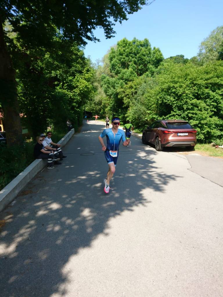 Eine Woche nach dem furiosen Ligaauftakt in Weiden ging der Niederbayer Luca Bauer bei der erstmalig ausgetragenen Mitteldistanz in Pocking an den Start. Die Distanzen waren für die Mitteldistanz klassisch verteilt, d. h. 1,9km Schwimmen, 90km Radfahren und 21km Laufen. Der Schwimmstarke Bauer setzte sich in der Auftaktdisziplin gleich in der ersten Gruppe fest und stieg an fünfter Position aufs Rad. Bis ca. Kilometer 60 konnte er dem Tempo an der Spitze gut folgen, bis ihm einige Konkurrenten auf der winkeligen Strecke nach einer Kurvenkombination enteilten. Mit etwas Frust im Bauch über dieses taktische Missgeschick konnte er in rund 1:20h noch einen guten Halbmarathon abliefern und sicherte sich somit den achten Gesamtplatz und in der Altersklasse 20 den Sieg. Zum Podium fehlten dem Schönberger in einem hart umkämpften Rennen nur zwei Minuten.