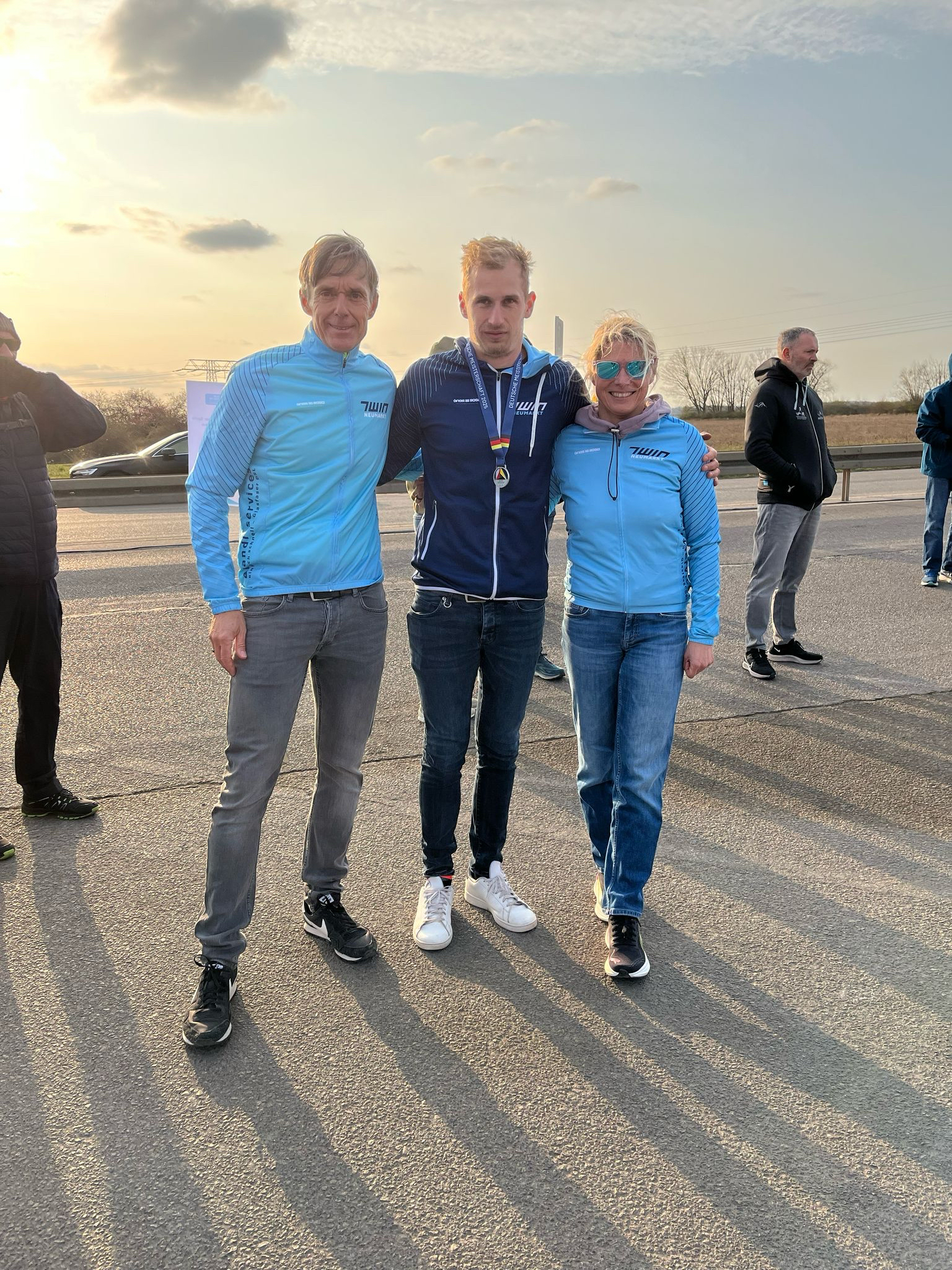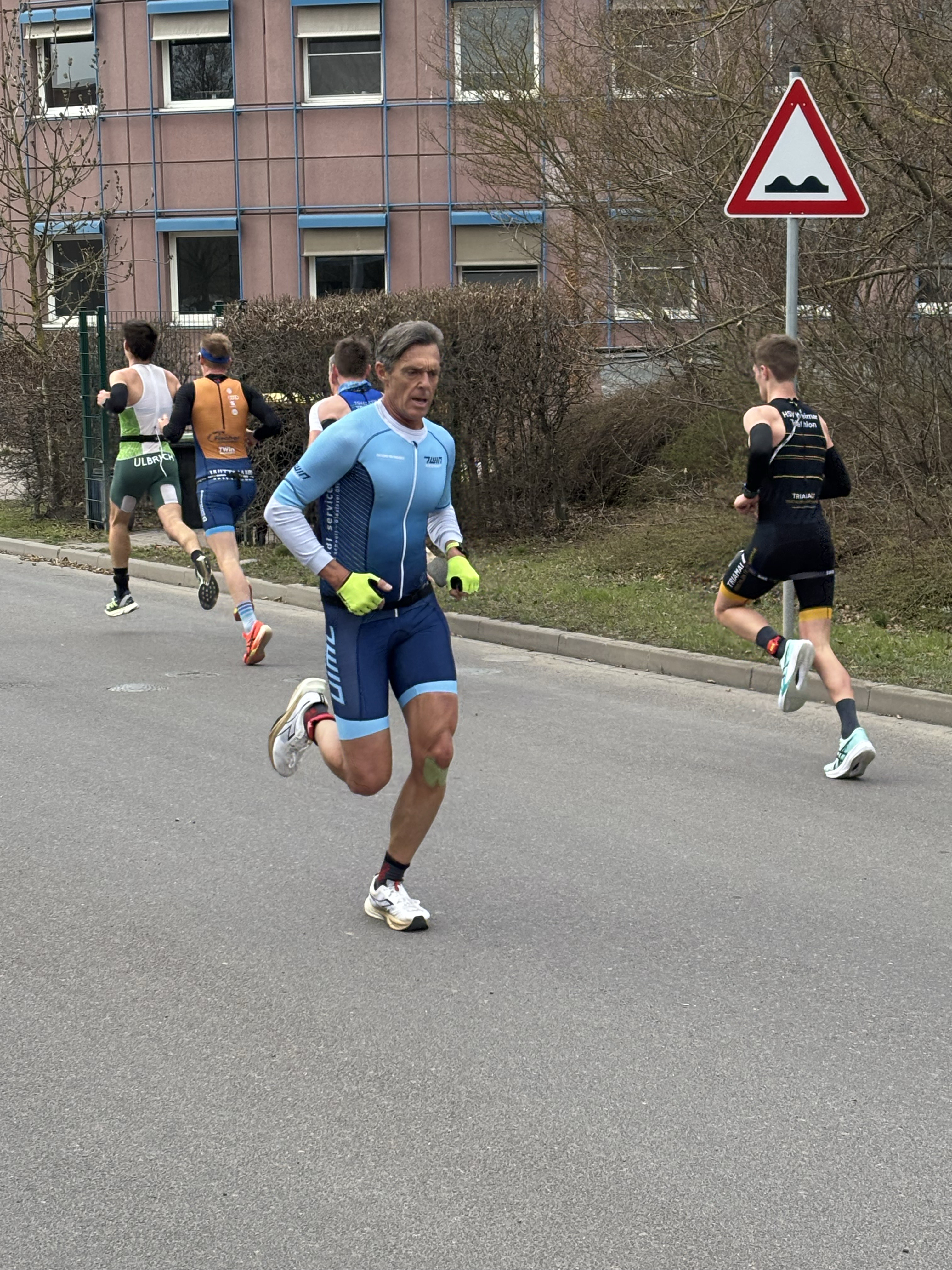 Am ersten Aprilwochenende fand die Duathlon DM in Halle (5 km Laufen – 21 km Radfahren – 3 km Laufen) statt und unser Team vom TWin Neumarkt war mit drei starken Athleten vertreten. Allen voran Thomas Wittmann. Die Veranstaltung begann mit den Männern und unser Aushängeschild Thomas zeigte eine beeindruckende Leistung. Mit einem hervorragenden 7. Platz in der Gesamtwertung bewies er einmal mehr sein Können. Wäre ihm in der Wechselzone nicht so viele Zeit verloren gegangen, hätte er durchaus um die Goldmedaille kämpfen können. Christian, der am Ende der AK 55 steht und nächstes Jahr wechselt, konnte ebenfalls einen großartigen Wettkampf abliefern. Auch er zeigte eine klasse Leistungen und bestätigte seine Position als einer der besten Athleten in seiner AK. Für Astrid war es ein weiteres Mal das gleiche Podium wie im letzten Jahr. Sie gab sich mit einem soliden 2. Platz zufrieden. Ihr Ergebnis zeigt, dass sie konstant auf hohem Niveau konkurriert. Die Zeiten waren: Thomas 1:05 Std., Christian 1:19 Std., Astrid 1:23