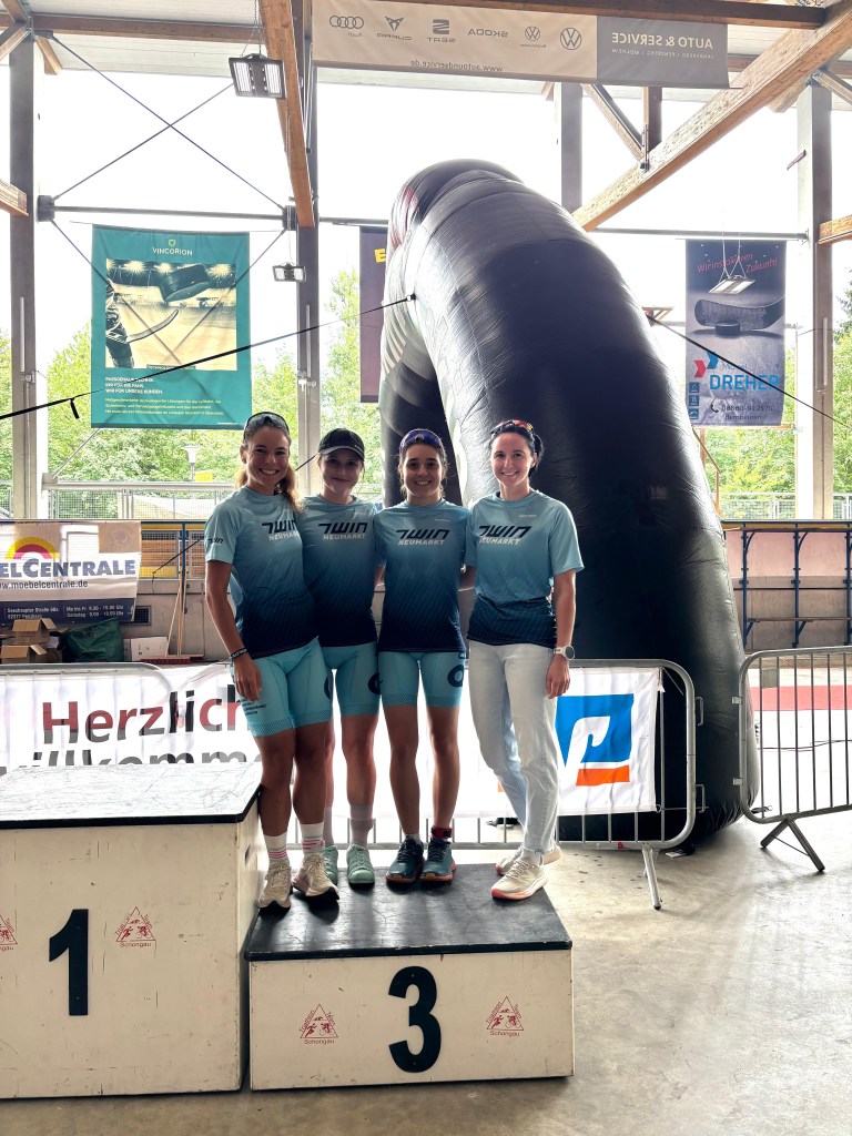 Bei der inzwischen 13. Auflage am Sonntag erwartete das ausrichtenden Team über 500 Teilnehmer. Das Schwimmen musste aber ausfallen, weil der Lech zu viel Wasser führte. Aus dem Triathlon wurde damit ein Duathlon. Die Distanzen waren beim Sprint ein Lauf über fünf Kilometer, gefolgt von 20 Kilometern auf dem Rad und weiteren zweieinhalb Kilometern Laufen. Für die Frauen und Herren war es jeweils ein Teamwettkampf. Die TWin Mädels erreichten an diesem Tag einen hervorragenden 3. Platz und dies bedeutete im Gesamtergebnis Platz 7 von insgesamt 15 Mannschaften und sie konnten sich von Platz 10 noch nach vorne schieben! Es waren 4 Windschattlerinnen am Start: Anja Beck, Sabrina Erhardt, Lisa Ruckriegel und Nathalie Kinder. Dabei mussten die Athletinnen immer zusammen bleiben und es war ein Streichergebnis erlaubt. Ein perfekter Saisonabschluss!