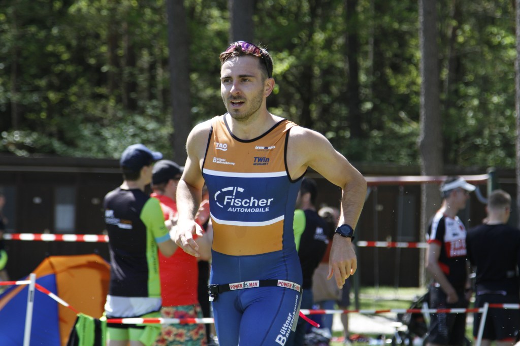 Für die neugegründete zweite Mannschaft war der 1. Vorstand Lukas Gruber als erfahrener Liga-Athlet im Einsatz, TWin-Routinier Armin Bauer wurde kurzfristig als Ersatzathlet benötigt und außerdem gaben die Neu-Neumarkter Dominik Daum und Florian Bader ihr Liga-Debüt. Die vier Athleten durften sich auf eine Sprintdistanz mit Windschattenfreigabe, also Gruppenfahren auf dem Rennrad freuen. Mit dem Massenstart im Schwimmen kam Lukas am besten klar und positionierte sich im guten Mittelfeld. Armin und Florian sowie Dominik hatten hingegen etwas zu kämpfen und reihten sich etwas weiter hinten im Feld ein. Auf dem Rad konnte Lukas etwas Boden gutmachen und zugleich ein paar Körner für die letzte Disziplin aufheben. Auch Armin und Florian konnten sich auf der Radstrecke im Duo unterwegs leicht verbessern. Dominik blieb leider die Rote Laterne. In den Laufschuhen sorgte Luke mit der fünfbesten Laufzeit ein Ausrufezeichen und setzte sich mit Platz neun in den Top10 fest. Das Duo Armin und Florian verbrachte auch die Laufstrecke stets immer in Sichtweite zueinander und pushte sich so nochmals ein paar Plätze nach vorne auf die Ränge 26 (Armin Bauer) und 28 (Florian Bader). Dominik musste bei seinem Liga-Debüt mit Rang 37 leider etwas Lehrgeld bezahlen.