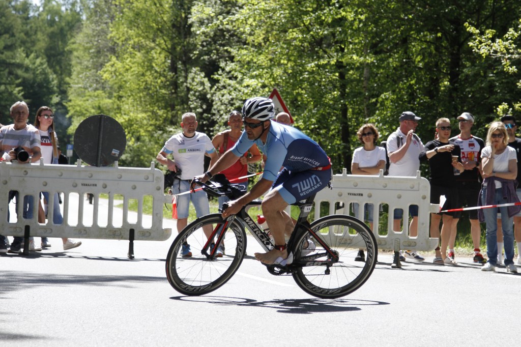 Um 14:30 Uhr ging dann die wilde Hatz los. Beim Schwimmen übernahm „Jogi“ Loos an der Spitze das Kommando über die Truppe und versuchte ein für alle Teammitglieder verträglich hohes Tempo zu finden. Trotz einer guten Schwimmleistung hatten bis in die erste Wechselzone die Mannschaften aus Bamberg und Planegg-Krailling ihren Rückstand egalisiert und waren gleichauf. Nun versuchten 12 Männer aus drei Teams so schnell es geht, ihre Neoprenanzüge in der Wechselzone auszuziehen und auf die Radstrecke zu sprinten. Bis dahin konnte der zweite Platz noch gehalten werden, doch hat mit Planegg-Krailling einer der Konkurrenten den besseren Start aufs Rad erwischt und überholten die vier TWinler gleich zu Beginn der Radstrecke. Aber deren Vorsprung wuchs im Laufe der zweiten Disziplin auf nicht mehr als 15sek. Auf der zweiten Rennhälfte schoben sich dann auch noch die starken Bamberger vorbei und somit war man auf Rang vier abgerutscht. Die beiden Mannschaften vor sich im Visier, warfen die Neumarkter alles in die Waagschale und hielten den Abstand sehr gering. Mit einer Durchschnittsgeschwindigkeit von knapp 42km/h wurde die kurvige Radstrecke absolviert und schon mit mächtigem Kräfteverschleiß ging es in die zweite Wechselzone. Auch dort verlor man keine Zeit und hielt den unmittelbaren Anschluss auf die Ränge zwei und drei.