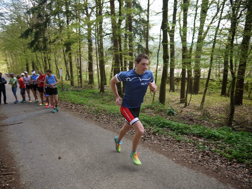 Schmidt wurde von Marco bei km 4, exakt am Gipfel des längsten Anstieges gestellt. Benz locker drauf, Schmidt bei Puls 195S/min versuchte sein Gewicht gekonnt einzusetzen und Benz wenigstens Berg ab noch etwas den heißen Atem (oder das Stöhnen?!) im Nacken spüren zu lassen. Doch bereits nach der ersten, kleinsten Erhebung war auch jenes Unterfangen beendet und Benz lief unbeeindruckt als klarer Sieger des Swim&Runs 2015 mit 30sec Vorsprung über die Ziellinie.
